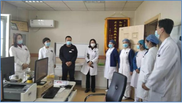 ▲副院长苏凤荣带领工作小组深入临床一线逐科告知并落实